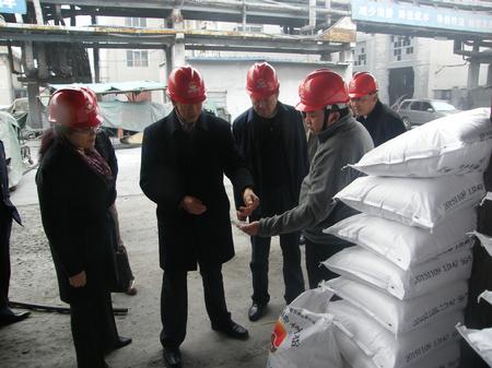 金昱元公司董事長(zhǎng)代良云為自治區(qū)國(guó)稅局副局長(zhǎng)陳連書(shū)介紹公司主要產(chǎn)品PVC樹(shù)脂的生產(chǎn)過(guò)程